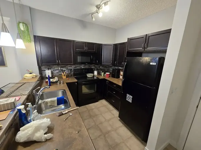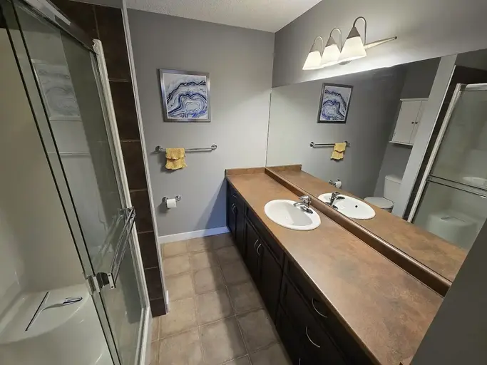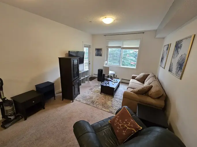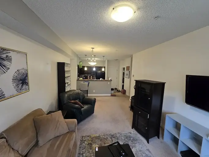 Apartment with partially furnished shared space in Bayside, Airdrie!Price is $1050 per month plus 50% of Internet/Electricity. Heat/Water is included in the rent. Includes a large private bedroom, walk-in closet and attached bath, access to a full kitchen and living room and south facing outside deck. There is also a common area for the building available. This comes with a parking spot in the parkade, as well as free outdoor parking in the parking lot. Apartment is shared with room-mate who has their own bedroom and bathroom.Included: - In-suite laundry - Cutlery/Dishware/Cups - Cooking Utensils/Pots/Pans/Baking Sheets - Free on-site parking - Parking space in parkade - Your own private ensuite bathroom - Smoke Detector - AC Unit Within walking distance of an RBC, Sorso, 711, Subway, Bubble Tea Brewers, Tequila and Tacos, and a liquor store. Very quick to get onto the highway from either Yankee Valley, 40th Ave, or the backroads. No smokers or additional pets please. Proof of Employment required. Damage deposit equal to one month's rent required. Six month lease. Available immediately.