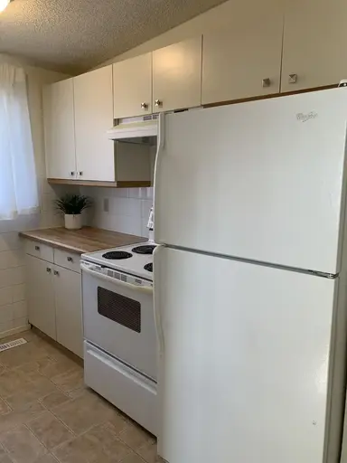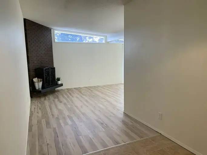 This unique unit has been renovated with brand new beautiful light hardwood plank flooring, new paint throughout, new bath and fixture with a cool BoHo vibe.Incentive: Complimentary Summer Lawn Care This lovely fourplex is 1300 sqft. and is clean w fresh paint, new flooring and new fixtures. Offers spacious QUIET living, high ceiling feature, 3 bedrooms and 1.5 bathrooms. It has a gas/wood burning fireplace and a very large open concept living/dining area. The uniquely high-sloped ceiling offers a really cool window feature that provides a ton of light during the day. Kitchen has stove, fridge and lots of storage. There is also a large storage area with washer dryer hook-ups.In addition to a great balcony there is a large patio/deck area perfect for relaxing in the sun and enjoying barbecues. There is a secure detached private automatic garage that is equipped with electricity. Utilities are not included. Unit has it's own furnace and hot water tank. Rental Incentive: Complimentary summer lawn. This established neighbourhood is in a fantastic location. Center Street, 4th Street, 14th Street and Deerfoot all offer quick access to downtown. It is in close proximity to a bus route, Nosehill Park as well as other parks, and is walking distance away from several grocery stores including Safeway, Coop, and Superstore, Tim Hortons, Pubs, Boston Pizza, Starbucks and more. A healthy dose of Churches and schools nearby. Non-smoking building. No Dogs. Cat negotiable with proven landlord reference for responsible pet ownership. Long-term rental opportunity. We are the proud recipient of the Small Landlord of the year award for 2025 from the CRRA.  Apply directly to Maryann at (403) 589-8700. Thank you.