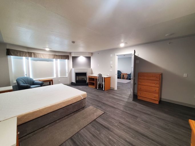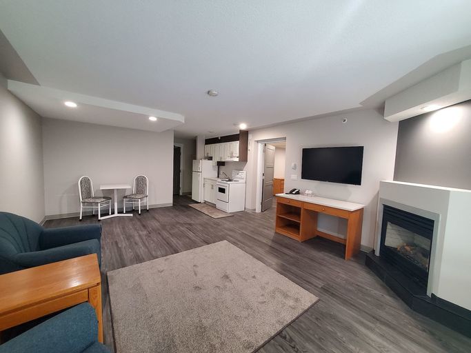 Newly Transformed Apartment in Leduc: We've converted a hotel into comfy furnished apartments with all the utilities included. We're close to the Premium Outlet Collection, public transit, and not far from the Leduc Recreation Center. Our place is safe with 24/7 video surveillance, lots of parking, and even a laundry for guests. The apartments are cozy, non-smoking, and have big windows and a fireplace. Come join our friendly community!