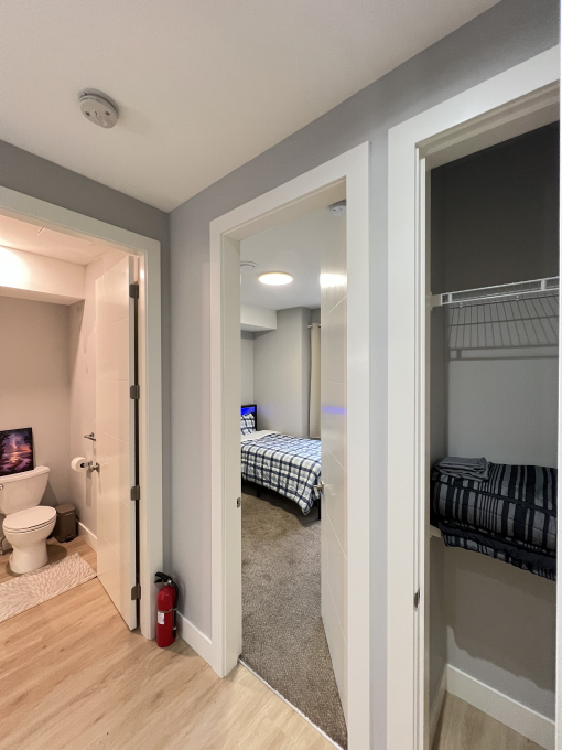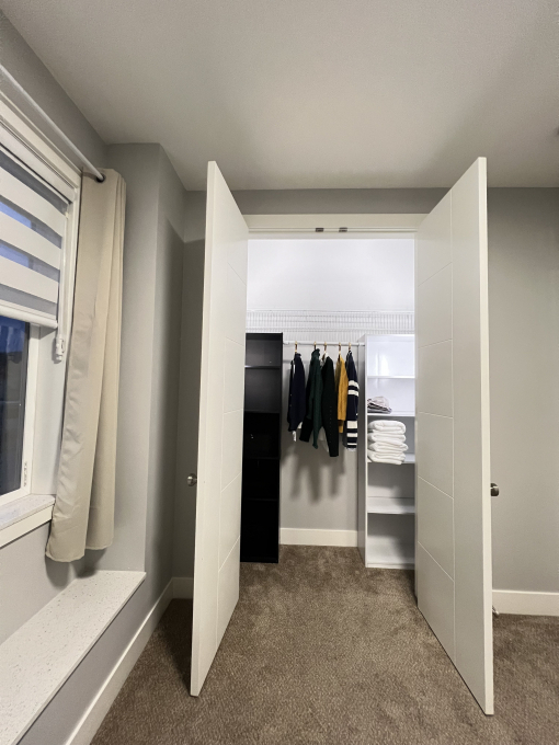 Enjoy your own private powder room (toilet & sink) conveniently located beside your room, plus extra storage space