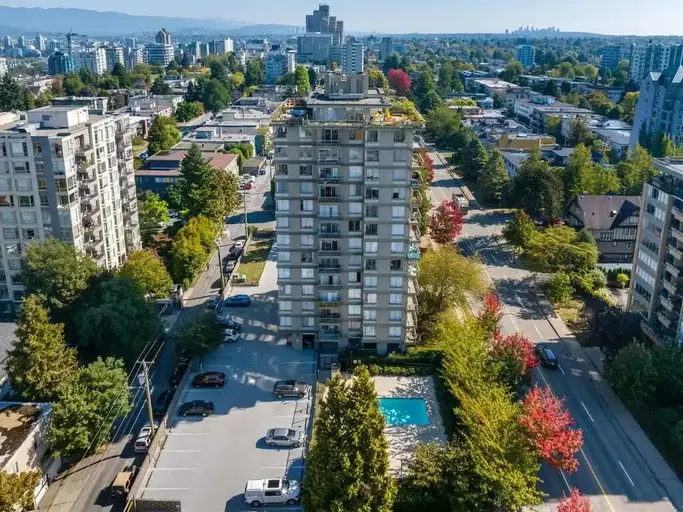 Set on an inviting, residential street in South Granville/Fairview district, The Skyline offers a pool and gym for residents of its studios, one and two bedroom suites, and penthouses. False Creek's Seawall and Granville Island are just a few minutes north, while the metropolitan Granville Street is just a few blocks east with a wide variety of boutiques, restaurants, and transit stops. To the east, we have Vancouver General Hospital just steps away.