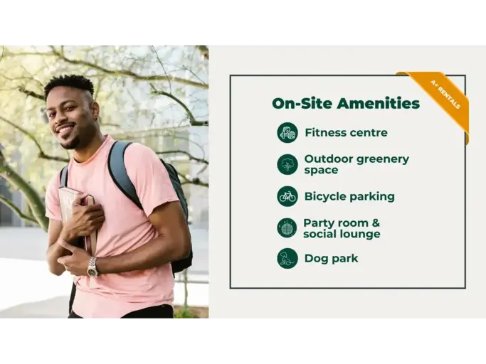 -------------AboutExperience Convenience and Comfort at 1042 Paisley Rd.Ideally located in a vibrant neighborhood, 1042 Paisley Rd. offers unmatched convenience with shopping, dining, parks, trails, medical facilities, and world-renowned schools just minutes away. Choose from spacious 1 and 2-bedroom suites featuring hardwood flooring, stone-like ceramic tile kitchens, and open-concept layouts. Enjoy elegant white cabinetry, self-closing drawers, and four stainless steel appliances in every kitchen. Each suite also includes in-suite laundry, central air conditioning, and private balconies with chic glass panels in select units.Enjoy a well-rounded lifestyle with on-site amenities, including a fitness centre, yoga room, party room, social lounge, locker room, and bike storage. Everything you need, all in one place!This building is proudly BOMA BEST Gold certified. BOMA BEST is one of North America's largest sustainability assessment and certification programs for existing buildings, dedicated to supporting smart and sustainable building operations worldwide. Our Gold certification reflects our unwavering commitment to excellence in sustainability and our ongoing efforts to operate in an environmentally responsible manner.Community AmenitiesVisitor parkingElevatorsGolf simulatorStorage LockersBBQ AreaBike RoomCourtyard with Lawn Bowling, Chess and Checker TablesDog ParkDog WashGame RoomGuest SuiteGymParcel LockersPlantersRooftop Beehive & Pollinator StationSocial Room with kitchen areaTheatre RoomYoga Room with Spin BikesSuite AmenitiesUtilities IncludedHeat
