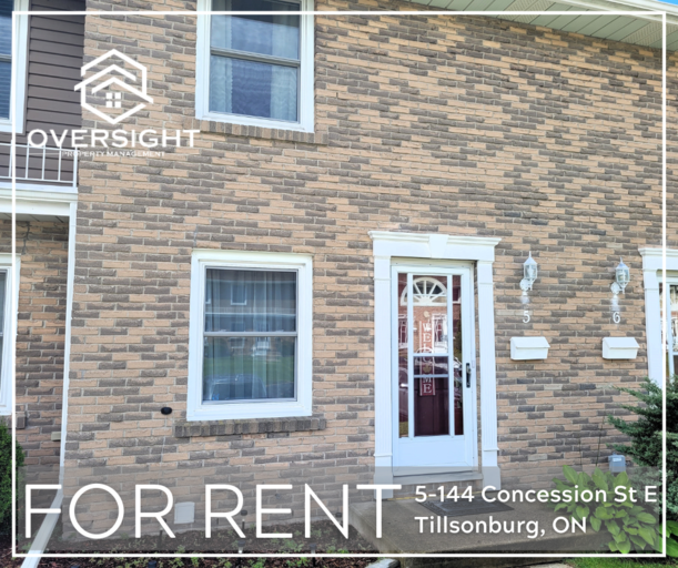2-Bedroom Townhouse in Tillsonburg!!🛁 1 Bathroom🛏 2 Bedrooms$1900/month plus utilitiesClean and bright condo townhouse unit in Tillsonburg! Features include 2 bedrooms, a 4-piece bathroom, hard floors on main and upper levels, a galley kitchen, and finished basement.Apply online at oversightpm.ca or email