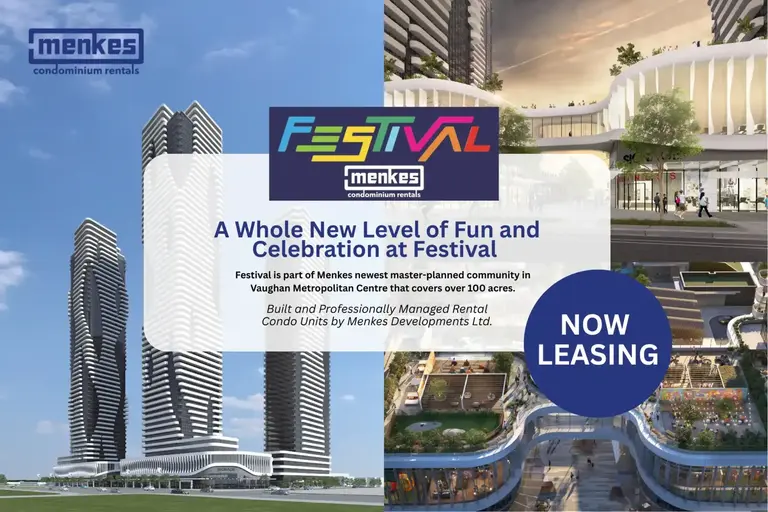 Dynamic Lifestyle Amenities! – Residents of Festival Condos will be able to enjoy the thriving and dynamic urban area that is Vaughan Metropolitan Centre. Festival Condos are located near amenities such as: entertainment options, fitness centres, retail shops, and much more. Nearby there is a Cineplex, Costco, IKEA, mini putt, Dave & Buster’s, eateries and clubs. Local attractions like Canada’s Wonderland and Vaughan Mills shopping centre are also located within driving distance of Festival Condos.Festival is part of Menkes newest master-planned community in Vaughan Metropolitan Centre that covers over 100 acres. Project is planned to feature several high-rise towers that are poised to become the tallest condo development in South Vaughan Metropolitan City. Festival is a multi-faceted mixed-use community, unlike anything else in downtown Vaughan. Its striking towers and connecting podium will meet a highly animated central plaza, consisting of boutique shops, cafes, restaurants, a fitness facility and a grocery store. The development will be a lively cultural hub, surrounded by arts and entertainment- including a new community centre and school- and also encompass 45 acres of parkland and 17 kms of trails and bike lanes.