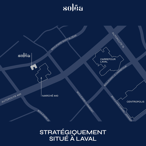 Découvrez un nouveau projet de condos à louer à Laval, dans le secteur Fabreville, près du Marché 440 et du Centropolis.Soléa est un projet unique au cœur de Laval, dans un quartier où tous les services sont à proximité ! Profitez de superbes condos locatifs modernes de 1 à 3 chambres à coucher, conçus pour répondre à vos besoins avec des matériaux de qualité et des options personnalisées.Nos appartements spacieux allient confort et modernité, créant ainsi un espace de vie idéal. Vous y trouverez l'équilibre parfait : un environnement stimulant et dynamique pour vous motiver et un espace apaisant pour vous ressourcer.Les avantages de vivre à Soléa :Piscine extérieureTerrasse commune sur le toitChalet urbain avec aire de jeuxSalle de sportAccès Internet gratuit dans les parties communesAire de lavage de bicyclettes et de voituresStationnement intérieur et extérieur ($)Bornes électriques disponibles AscenseursCaméras de surveillanceService d'interphoneConcierge résidentEt bien plus encore !Inclusions disponibles :Appareils électroménagers 3½ » inclusLave-vaisselle en acier inoxydable inclus dans toutes les unitésPossibilité de louer les appareilsFrais d'eau chaude inclusRaccordement laveuse/sécheuseClimatisation murale et échangeur d'airLuminairesVisitez un condo modèle dès maintenant ! Contactez-nous par téléphone ou par SMS au 438-230-0257.*Une vérification de crédit et une vérification auprès du tribunal administratif (Régie) seront effectuées.**Les prix, les dates d'occupation et les images sont donnés à titre indicatif et peuvent être modifiés sans préavis.Saisissez cette occasion de vivre à Laval, Fabreville, Saint-Martin, Champfleury, Centropolis, Saint-Elzéar, Bélanger, Sainte-Dorothée, Sainte-Rose...-------------AboutBrand new condo for rent in LavalDiscover a new condo project for rent in Laval, in the Fabreville sector, near Marché 440 and Centropolis.Soléa is a unique project in the heart of Laval, in a neighborhood with all services nearby! Enjoy superb, modern 1- to 3-bedroom rental condos, designed to meet your needs with quality materials and personalized options.Our spacious apartments combine comfort and modernity, creating the ideal living space. You'll find the perfect balance: a stimulating, dynamic environment to keep you motivated, and a soothing space to recharge your batteries.Advantages of living at Soléa :Outdoor swimming poolCommunal roof terraceUrban chalet with play areaGymFree Internet access in common areasBicycle and car wash areaIndoor and outdoor parking ($)Electricity terminals available ElevatorsSurveillance camerasIntercom serviceResident conciergeAnd much more!Inclusions available:3½” appliances includedStainless steel dishwashers included in all unitsPossibility of renting appliancesHot water charges includedWasher/dryer hook-upWall-mounted air conditioning and air exchangerLight fixturesVisit a model condo now! Contact us by phone or SMS at438-230-0257.*A credit check and verification with the administrative tribunal (Régie) will be conducted.**Prices, occupancy dates, and images are indicative only and subject to change without notice.Seize this opportunity to live in Laval, Fabreville, Saint-Martin, Champfleury, Centropolis, Saint-Elzéar, Bélanger, Sainte-Dorothée, Sainte-RoseCommunity AmenitiesUnderground parkingVisitor parkingOutdoor parkingElevatorsOutdoor poolSocial roomFitness roomConvenience storeStorage lockersExercise roomSecurity onsiteRecreation roomPublic transitShopping nearbyConciergeRooftop BBQ AreaSocial RoomStorage LockersSuite AmenitiesAir conditionerDishwasher availableBalconiesCity viewsUtilities IncludedWaterSewageGarbage Collection