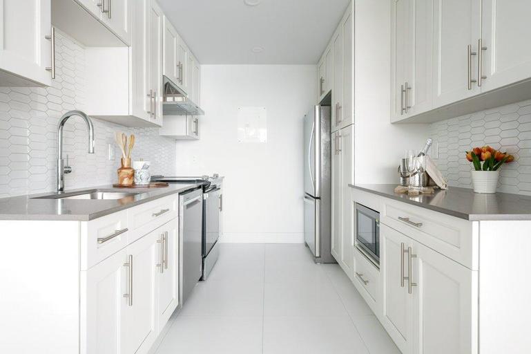 • Tiled kitchen backsplash (select suites)