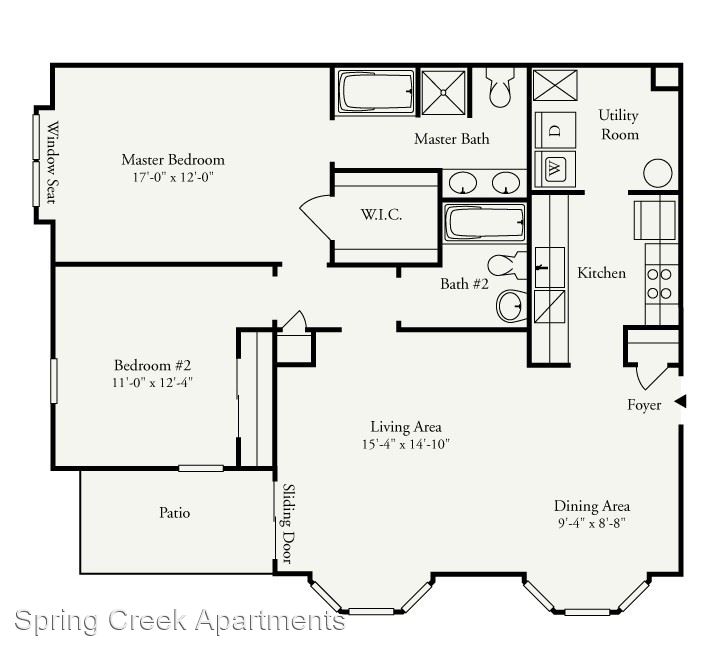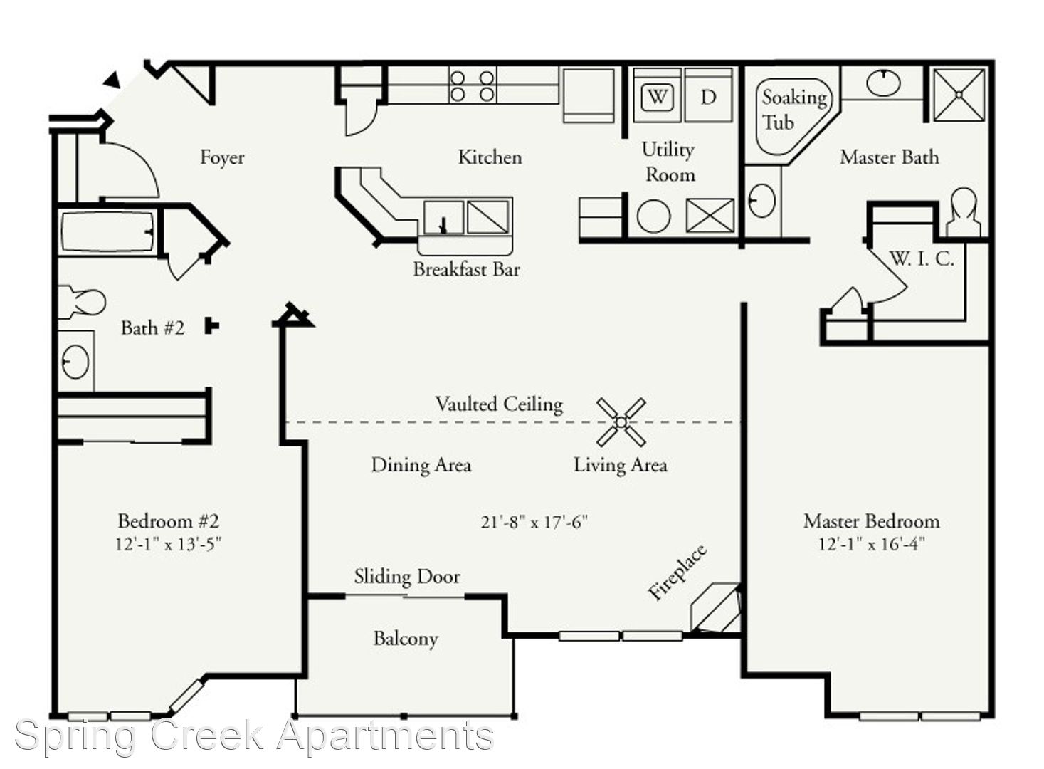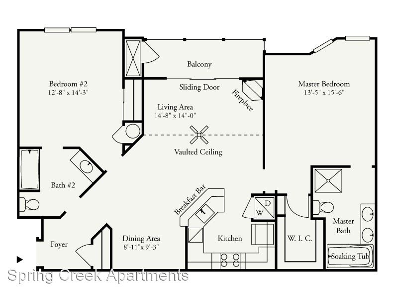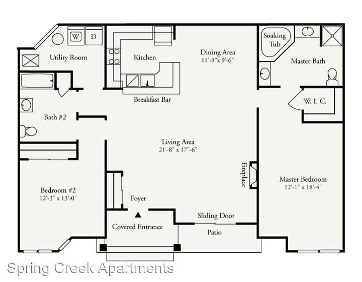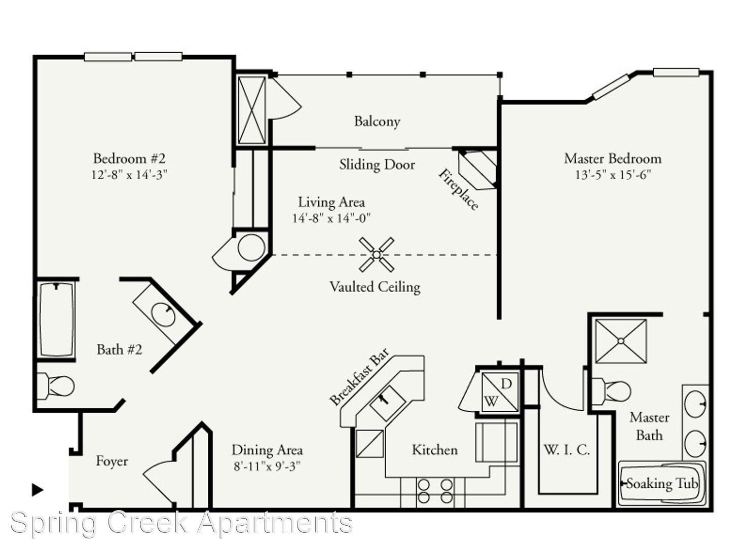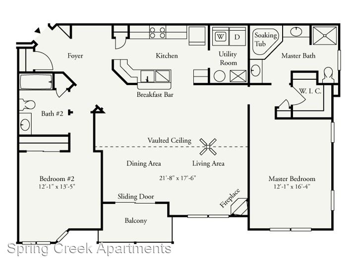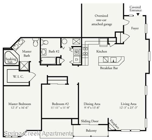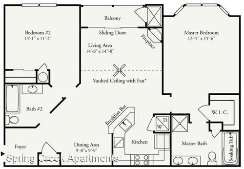 Orchid Premium 1st Floor - *Rental Rate quoted is subject to change based upon lease term. This incredibly spacious two-bedroom, two-bathroom apartment consists of 1,417 sq. ft. and is located on the first floor. The private entrance opens into a roomy living room with an electric fireplace. Adjacent to the living room is the dining room and open kitchen with breakfast bar. The unique split bedroom layout offers additional privacy. The master suite includes a sizable walk-in closet and direct access to the master bathroom, which is complete with a soaking tub, shower stall, and double vanities.