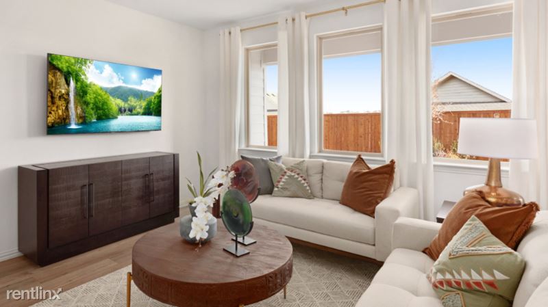 Brand New! Move-in ready! Vinyl flooring throughout the home for easy maintenance! Beautiful single-story home in Preserve at Honey Creek available with good-sized bedrooms and bathrooms, in the pristine location of McKinney, which is close to US-75 and 380. This single-story home has 4 bedrooms, 2 bathrooms, an attached two-car garage, a spacious backyard and is equipped with Ring bell security. The main bedroom has an en suite bathroom with a walk-in shower, a roomy walk-in closet, and a double sink vanity. The open concept living area features a modern kitchen, breakfast nook and family room with a covered back patio attached. Appliances available to be added to the lease for additional charge - refrigerator, washer and dryer. Landlord requires monthly income of at least three times the monthly rent. Amenity features: resort style pool with lazy river, clubhouse, and playground. Close to schools, 5 minutes to HWY 75, Costco, Target and Walmart are all within 10-15 minutes away!